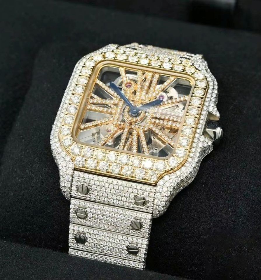 Pass Diamond Tester Stainless Steel Business Luxury Hip Hop Fully Iced Out Mens Watch with Pointer Dial Mechanical Movement