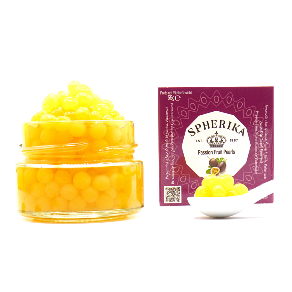 Passion Fruit - Spherika Pearls 55g Glass Jar 1 oz Spain Gourmet Foodie Dessert Garnish Topping Decoration Flavour Pearls Fruit