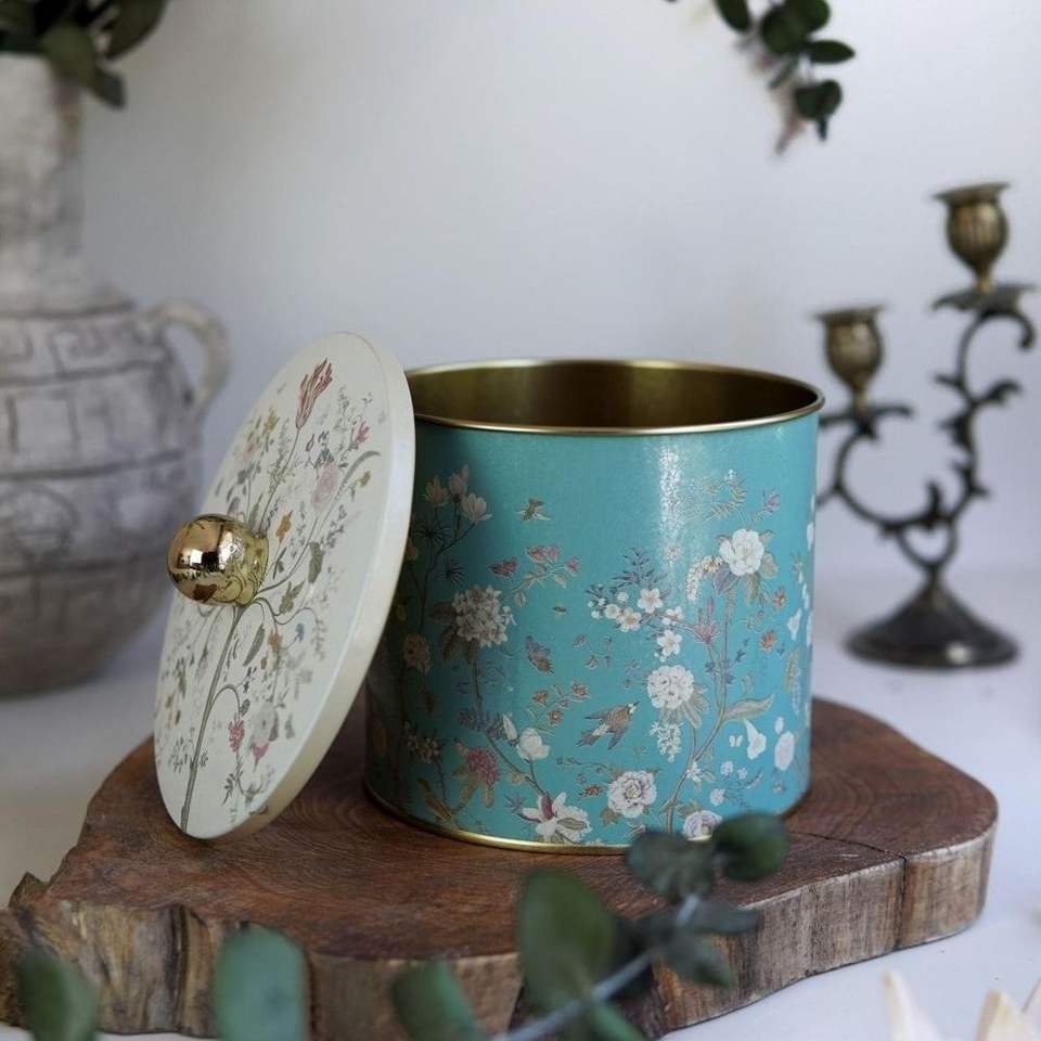 Kontensan ER1429F Pastel Blue 1.7L Floral Design Metal Round Canister Knob Handle 140x125mm Food Storage Container Turkey