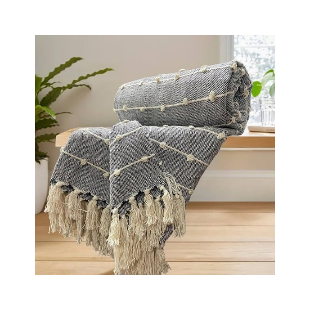Pastel Blue Recycled Waffle Texture 60x80in Sofa Throw With Tassels GRS Certified Best For Eco Oriented Long Wear Home Textiles