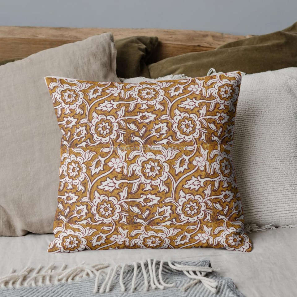 Pastel Hand Block Print Cushion Case Soft Cotton Decorative Pillow for Nursery and Living Room Foldable Printed Pillow Covers