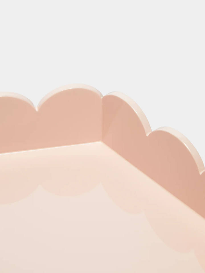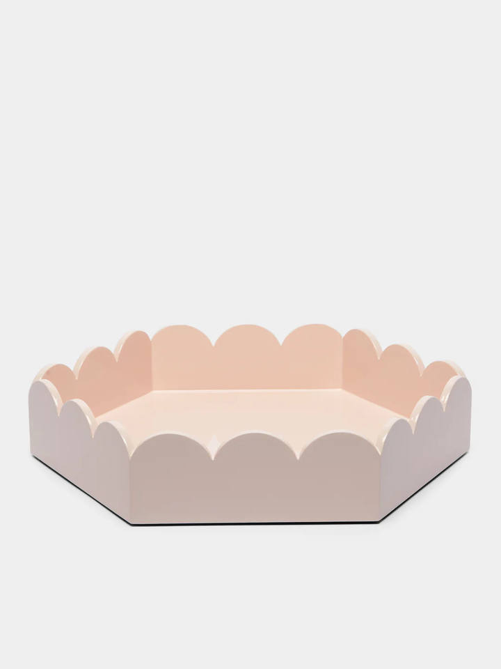 Pastel Pink Japandi Luxury Lacquer Vanity Tray Scallop Edge Decorative Hexagon Organizer for Desk Vanity Customizable Scallop