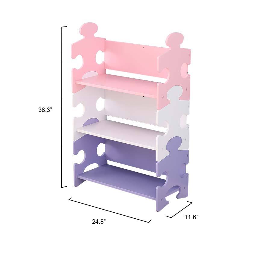 Pastel Pink Purple Puzzle Design Kids Bookshelf, 3-Tier Open Storage Display Shelf Organizer Rack for Children’s Room