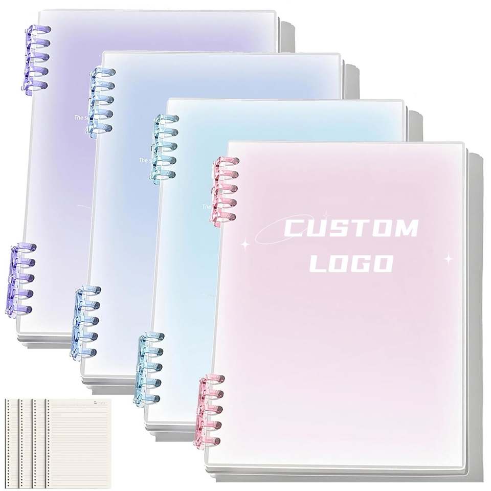 Pastel Translucent Binder Notebook Customizable Logo Detachable Loose-Leaf Paper School Office Daily Use Stationery