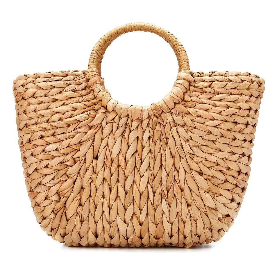 2025 New Fashion Ladies Handbag Large Capacity Striped Water Hyacinth Beach Tote Bag Two Handles Casual Style Decoration Flowers