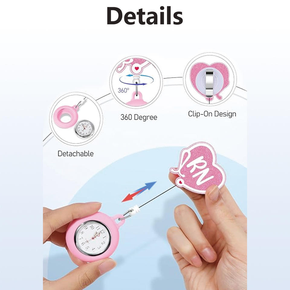 Patch Clip Hanging Lapel Nurse Watch Silicone Cover Brooch Pocket Watch Badge Reel Retractable Nurse Watch for Doctors