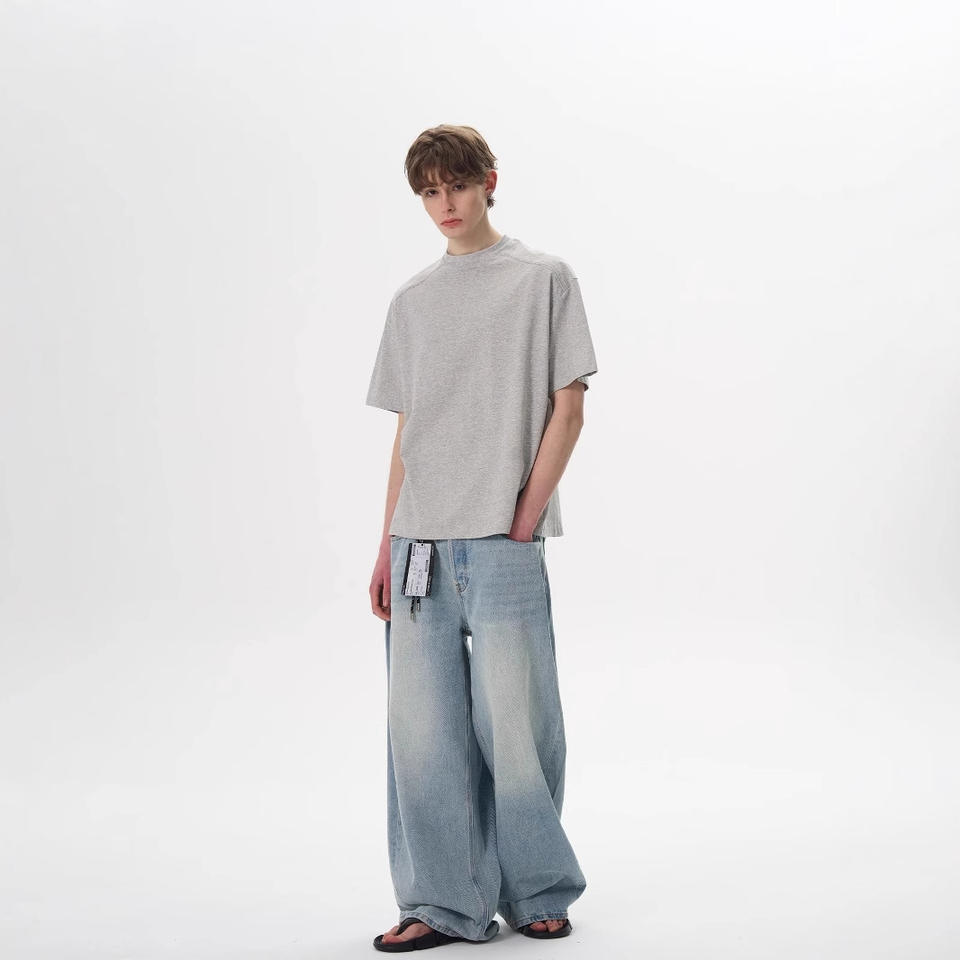 Patchwork Beaded Deconstructed Design Cleanfit Short Sleeve T-Shirt for Men Summer Loose Boxy Fit Casual EL Flashing Top