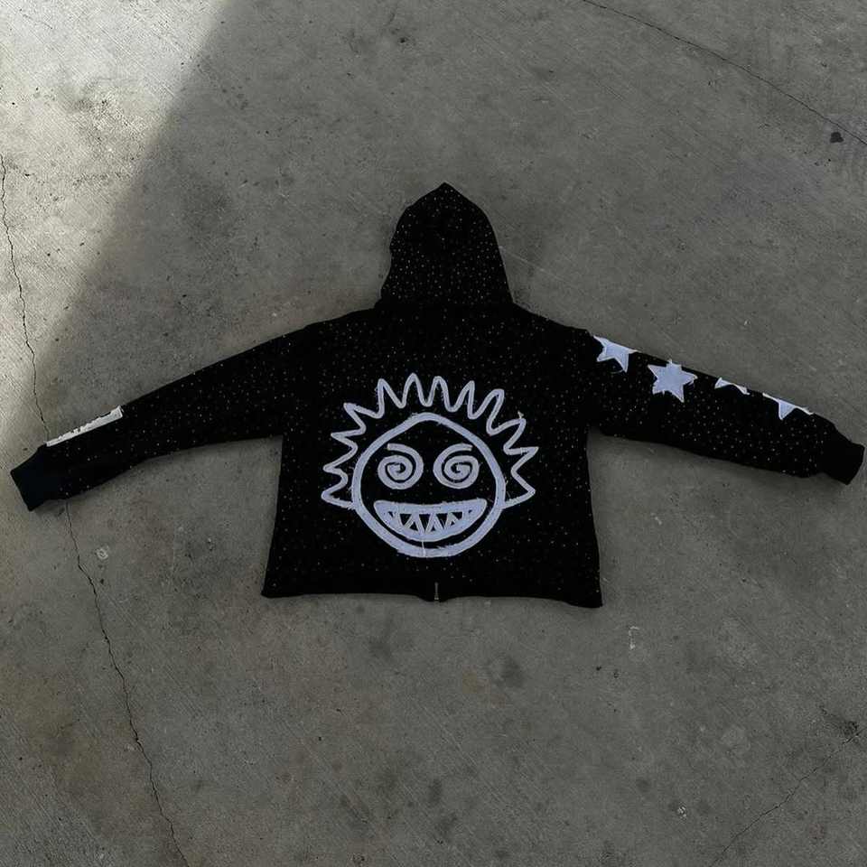 Patchwork Embroidery Full Zip up Boxy Fit Hoodie Manufacturers Custom Zipup Hoodie Thick Cotton Acid Wash Cropped Zip up Hoodie