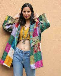 Patchwork Jacket Coat Indian Cotton Vintage Quilted Traditional Designing Purple Kantha Blazer Reversible Jacket Pockets Long