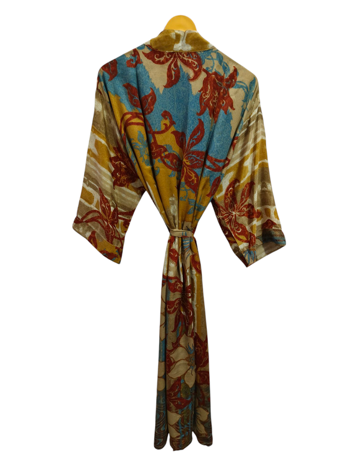 Patchwork Kimono Robe Bikini Cover Up Night Wear Long Robe, Handmade Indian Vintage Recycled Silk Sari Kimono