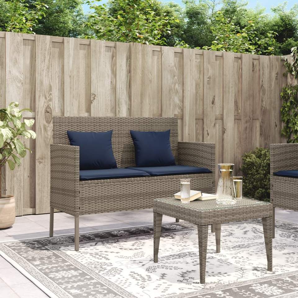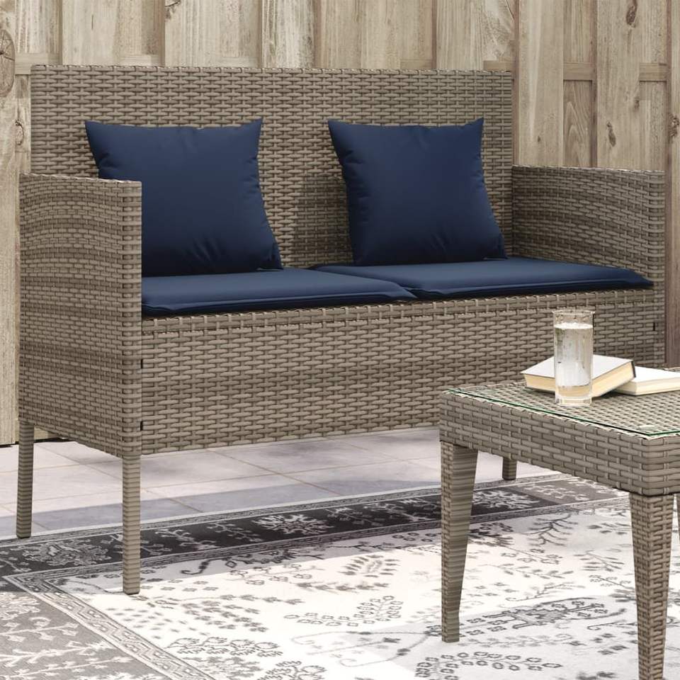 Patio Bench Outdoor Rattan Furniture 2 Seater Gray Water Resistant Garden Bench Modern Design