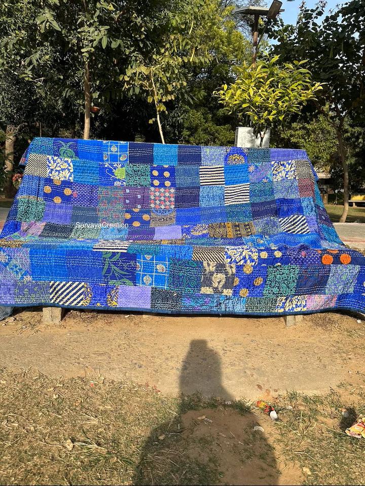 Patola Silk Kantha Quilt Reversible Vintage Boho King Size Bedding Throw Blanket Handmade Organic Cotton Jungle Animal Print