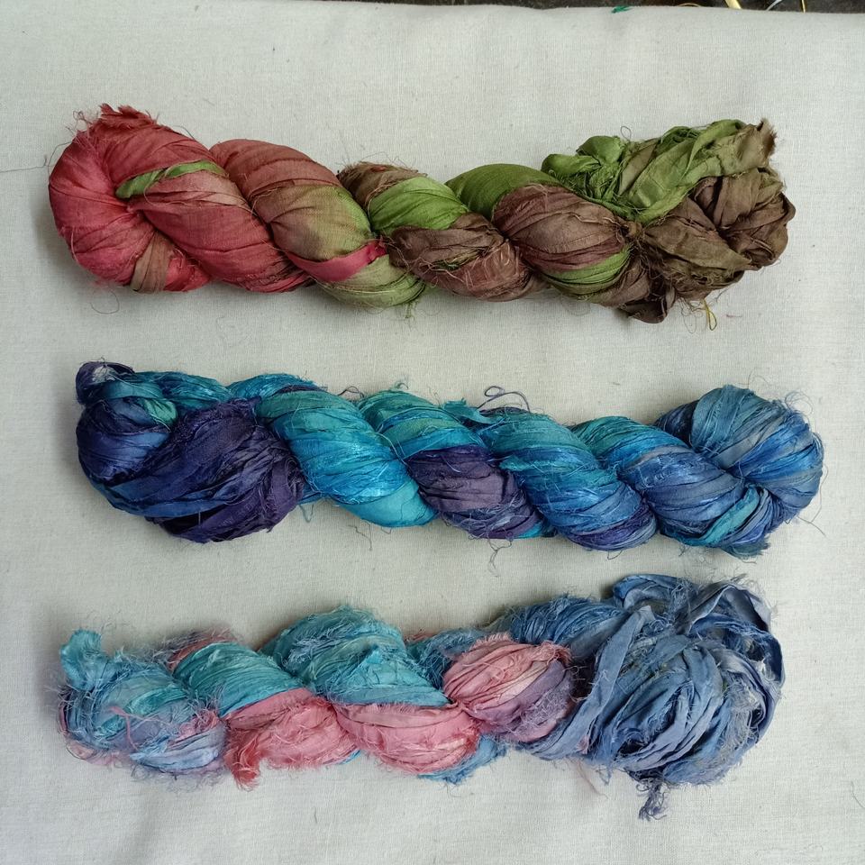 Patterned Sari Silk Ribbon Y Arn Made From Recycled Chiffon Sarees Suitable for Jewelry Makers and Yarn Stores Made From Silk