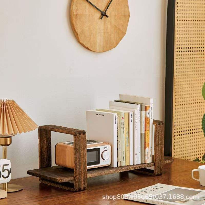 Paulownia Wood Bookend Solid Wood Desk Organizer Retro Color Book Support Storage Rack For Office Home Use