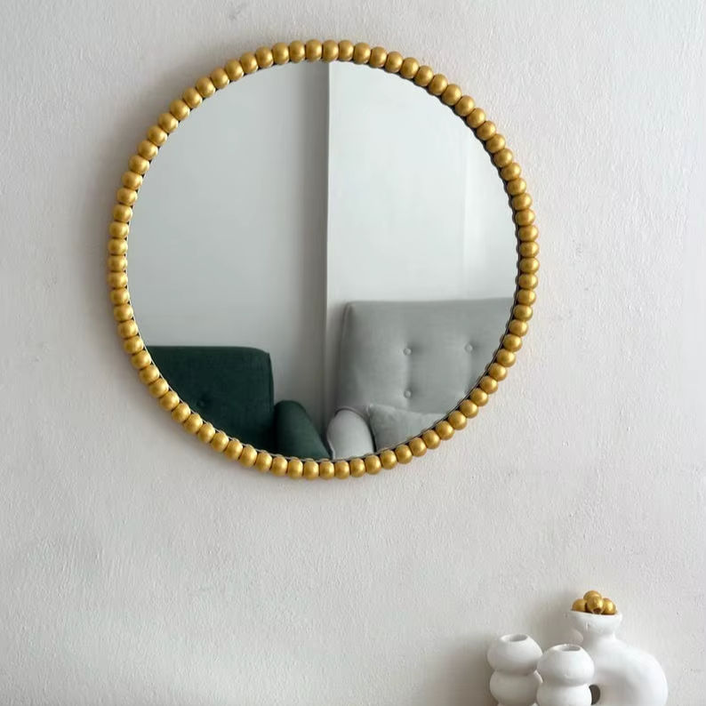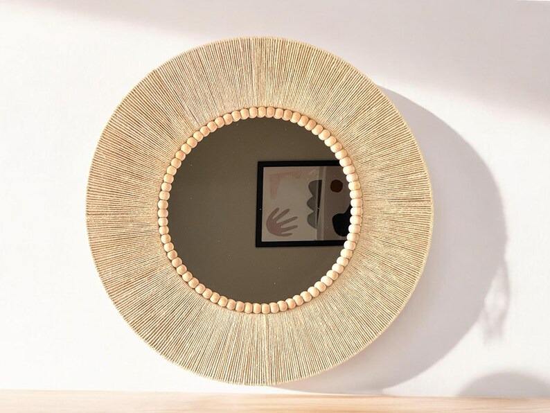 Paulownia Wood Round Wall Mirror Minimalist Circle Mirror With MDF Backboard Modern Nordic Entryway Console Bathroom Decor