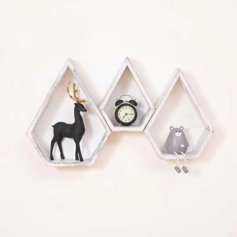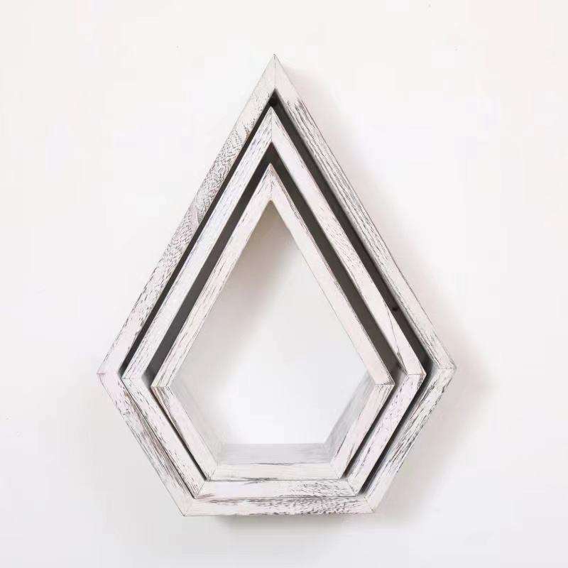 Paulownia Wooden 3-Piece Water Drop Wall Frame Set Decorative Living Room Bedroom Home Wall Hanging Partition Shelf Home Decor