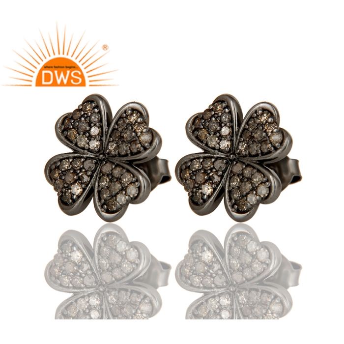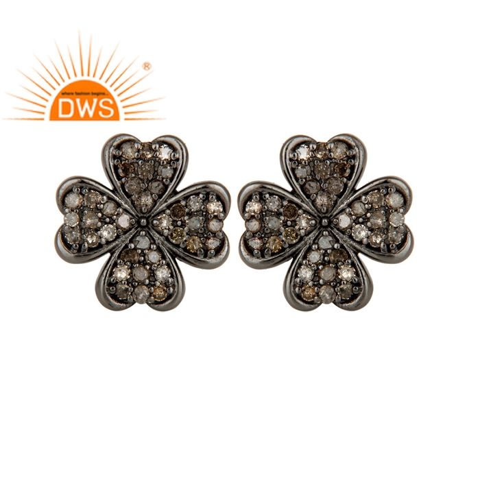 Pave Diamond Set Flower Shape Stud Earrings Jewelry Wholesaler Handmade Silver Jewelry Manufacturer