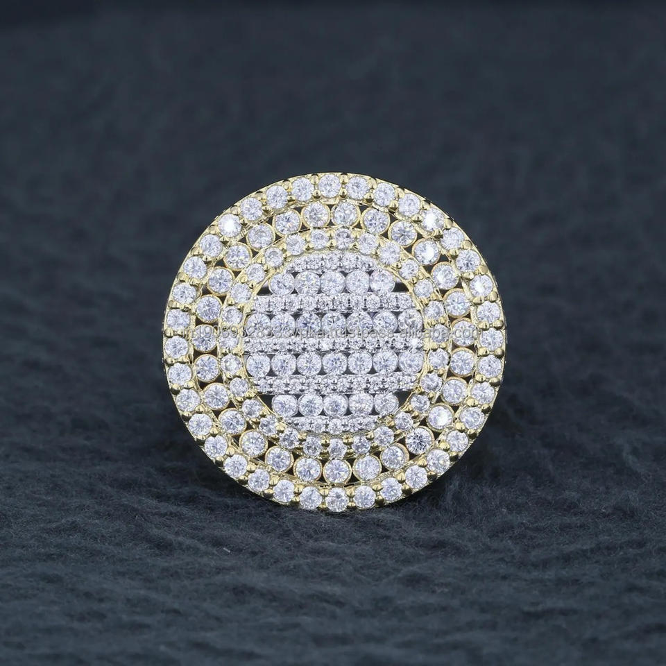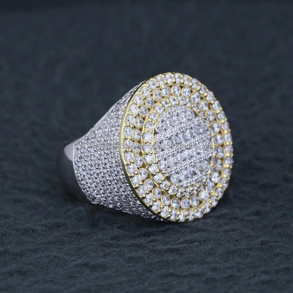 Pave Moissanite Cluster Men Iced Two Tone Pinky Hip Hop Streetwear Jewelry Large Silver Gold Statement Band Wedding Birthday