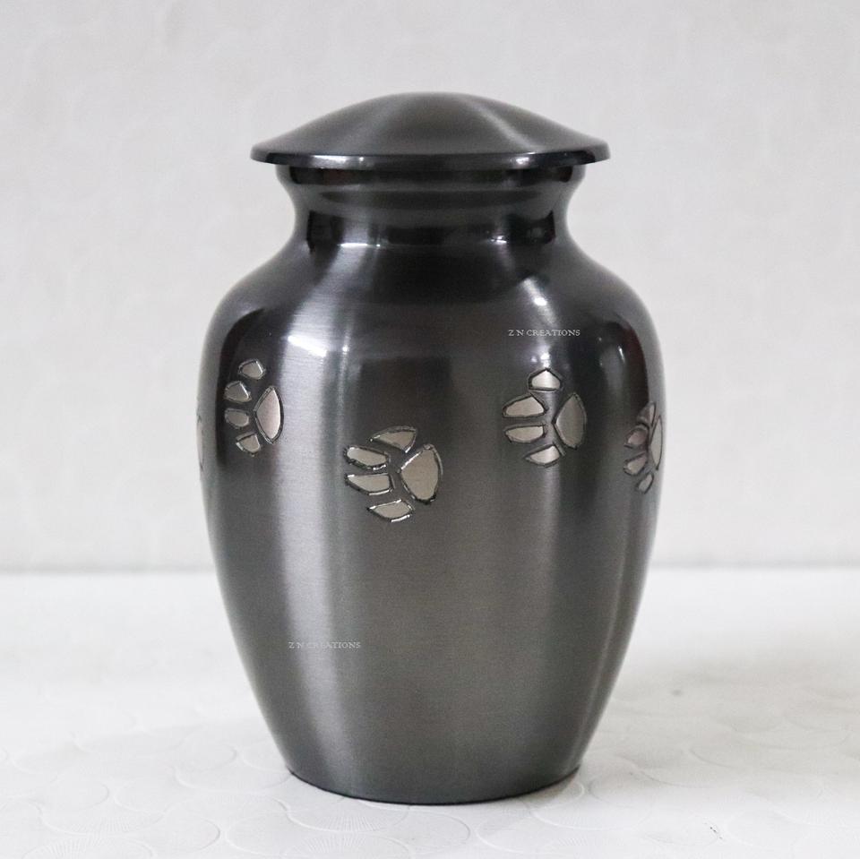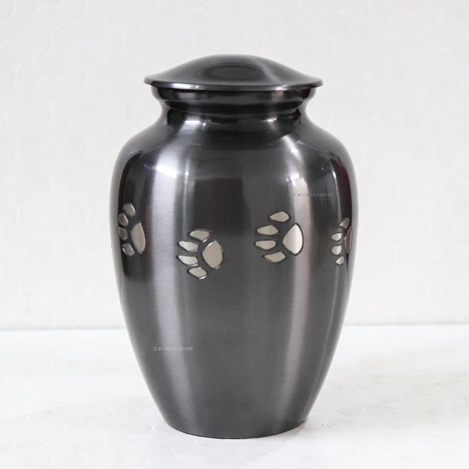 Paw Pet Modern Brass Cremation Urn Black Pewter Handcrafted Engraved Ashes Storage