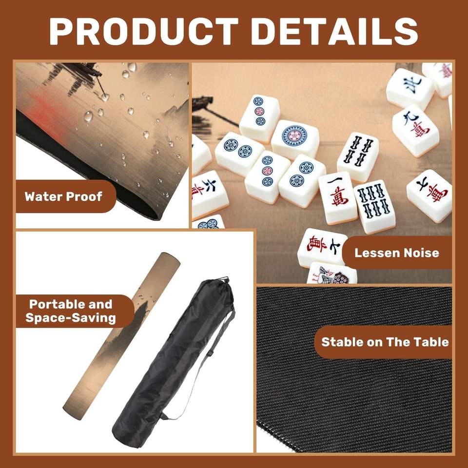 Peaceful Boat Ride Red Sun Asian Mahjong Mat 31.5"x31.5" Non-Slip Noise Reduction for Dominoes Poker Card Games Parties