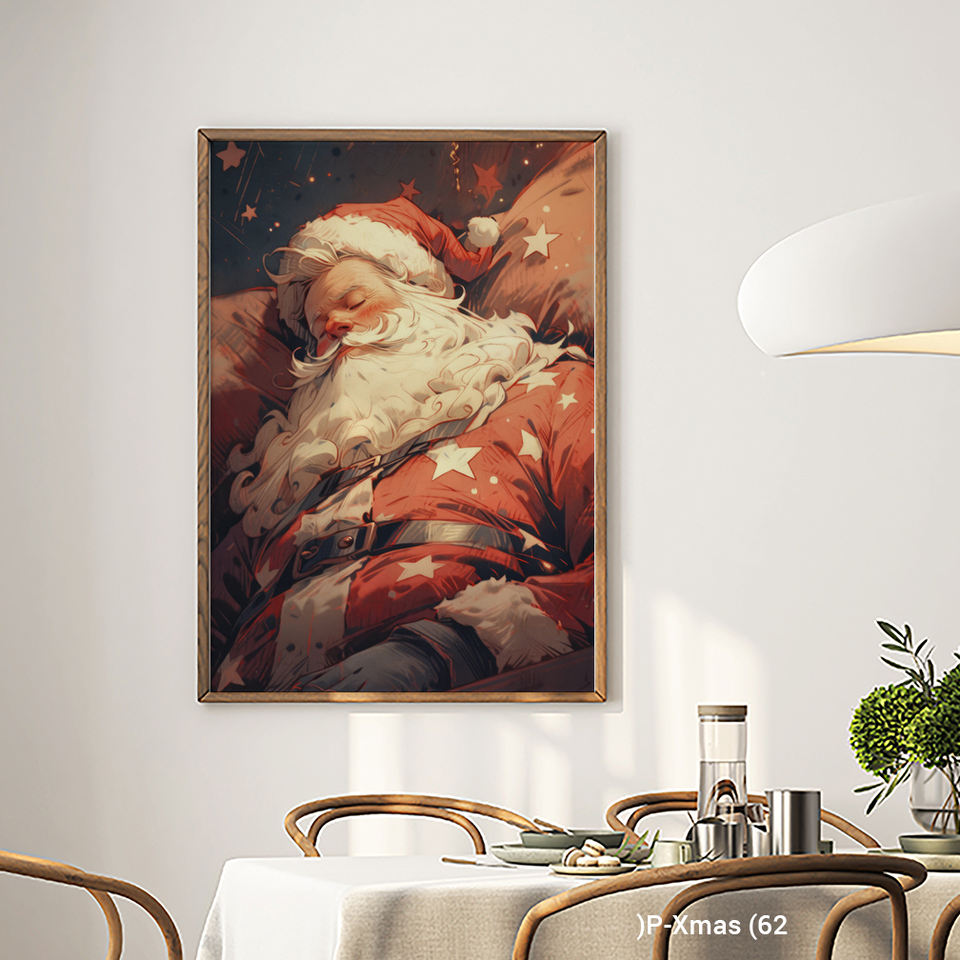 Peaceful Santa Claus Asleep Modern Premium Canvas Wall Art with Wood Frame Wholesale Decor