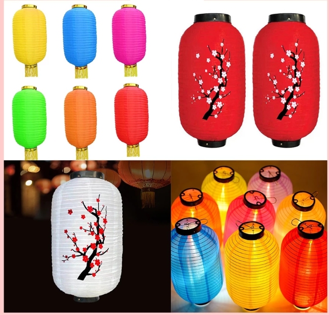 Peach Blossom Silk Lantern from Vietnam - Premium Thick Fabric Hanging Decoration for Tet, Mid-Autumn, and Festivals