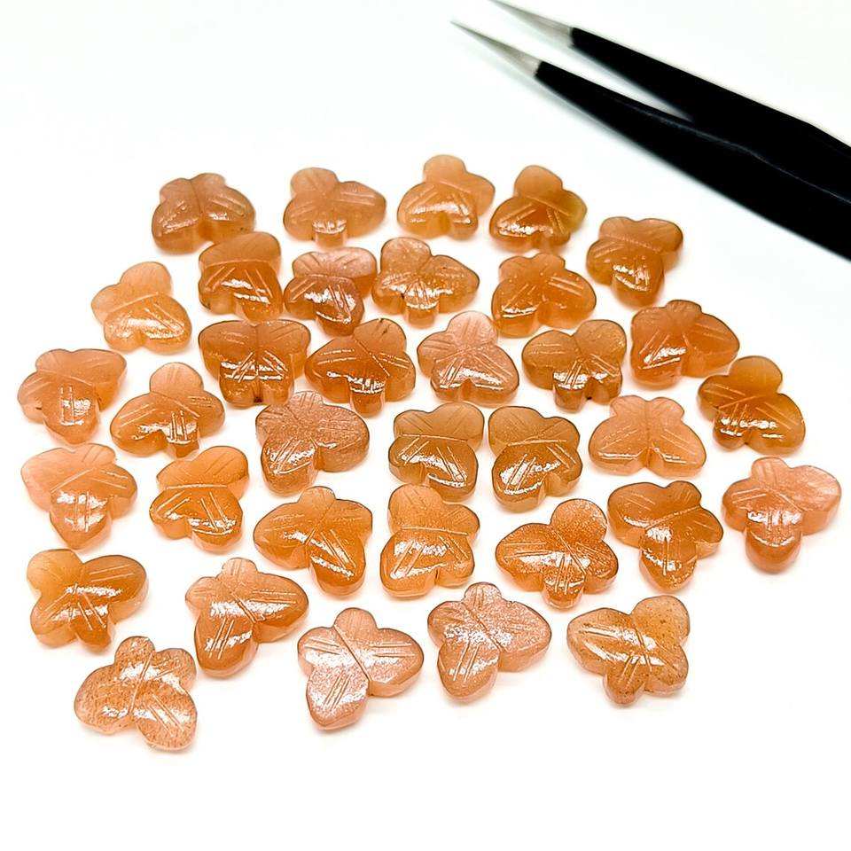 Peach Moonstone Butterfly Hand Carved Beads Moonstone 14x10mm Loose Gemstones Charms for Jewelry Making At Wholesale Price Bulk