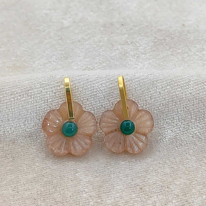 Peach Moonstone Flower Carving Charms 14mm Sterling Silver Gold Plated Rotating Loop Handmade Charm Wholesale Jewelry Supplies