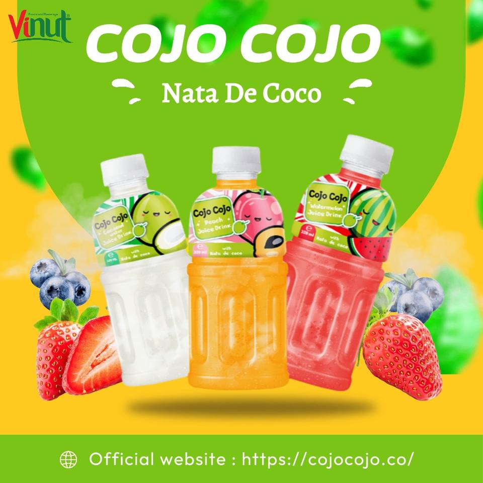 Peach Nata de Coco 320 ml 10.8 fl oz Juice Drink Cojo Cojo 12 bottles per carton bottle OEM ODM Private Label Free Sample