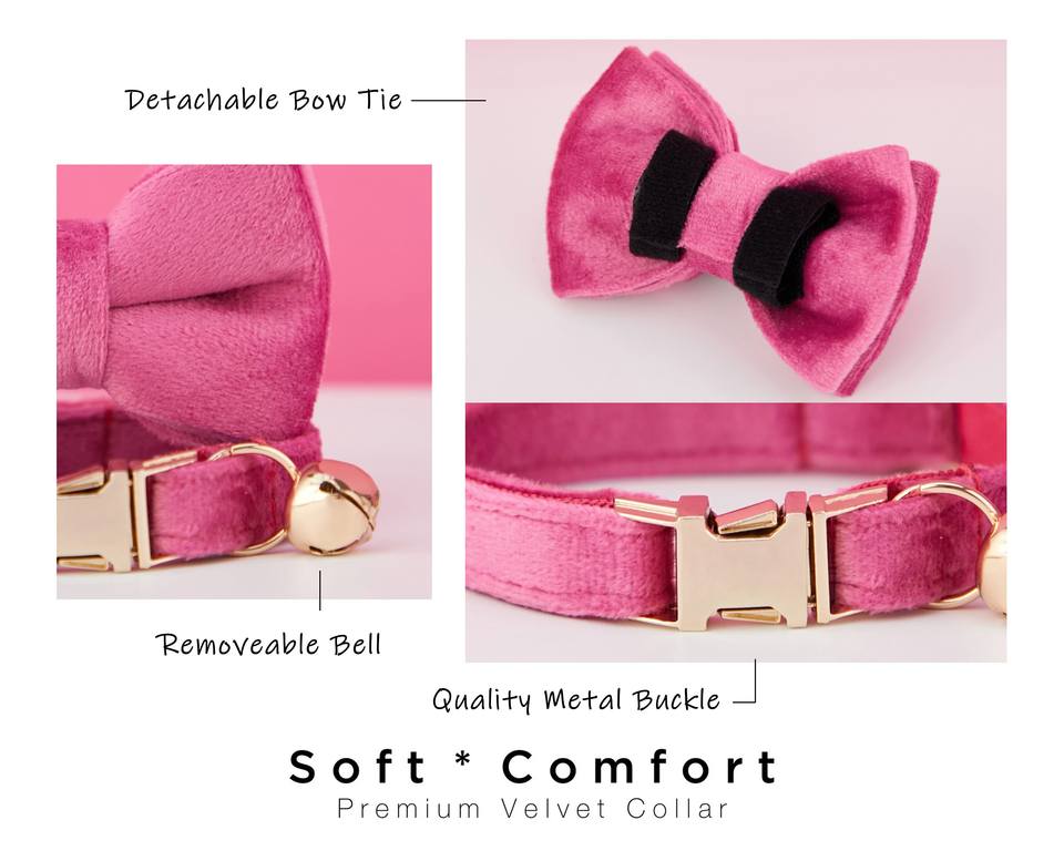 Peach Veet Personalized Cat & Small Dog Collar Bow Tie Leash Set,Custom Engraved Kitten Puppy Name Tag,Free Gold Bell,Male