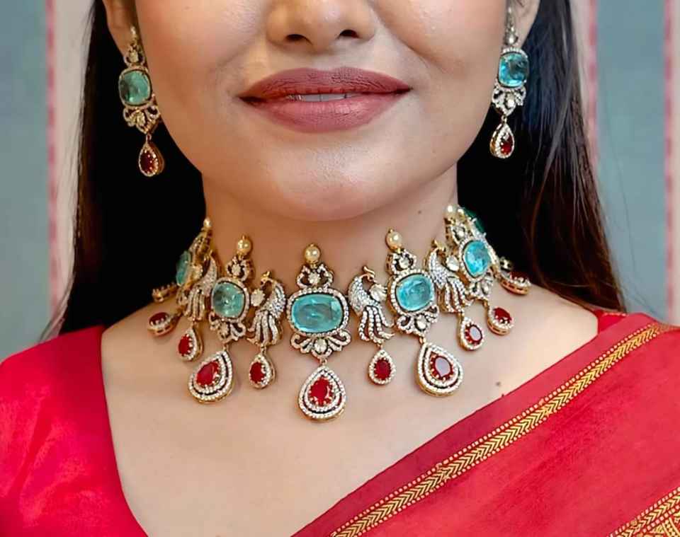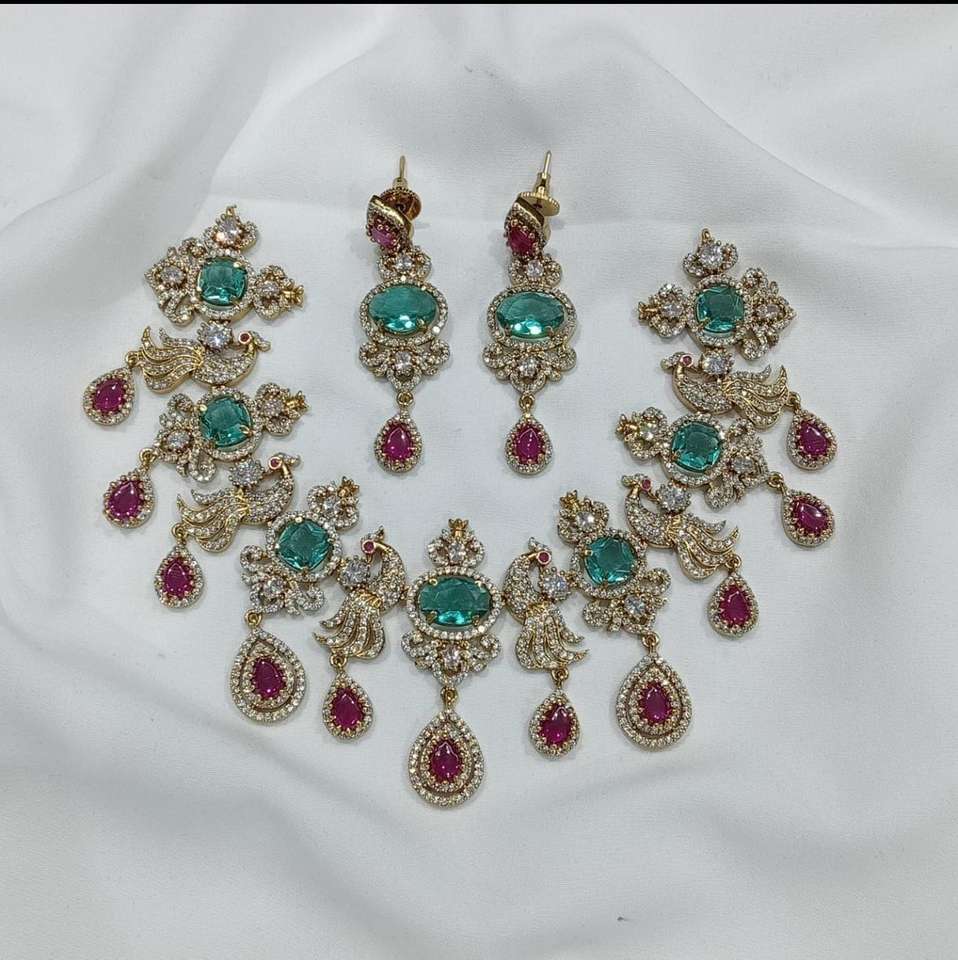 Peacock Design Cubic Zirconia Necklace Set For Women With Matching Earrings Elegant Bridal & Party Wear Indian Ethnic Jewelry