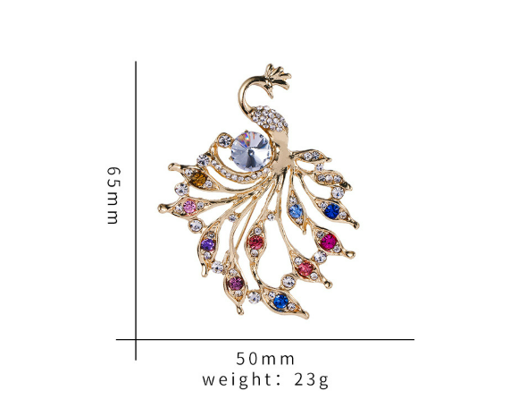 Peacock Fashion Jewelry Women's Brand Designer Alloy Gold Plated Rhinestone Brooch Pin-Wedding Gift Plating