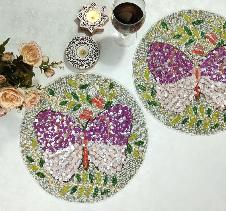 Peacock Handmade Beaded Placemats, Tablemat Peacock Handmade Beaded Placemats, Tablemat