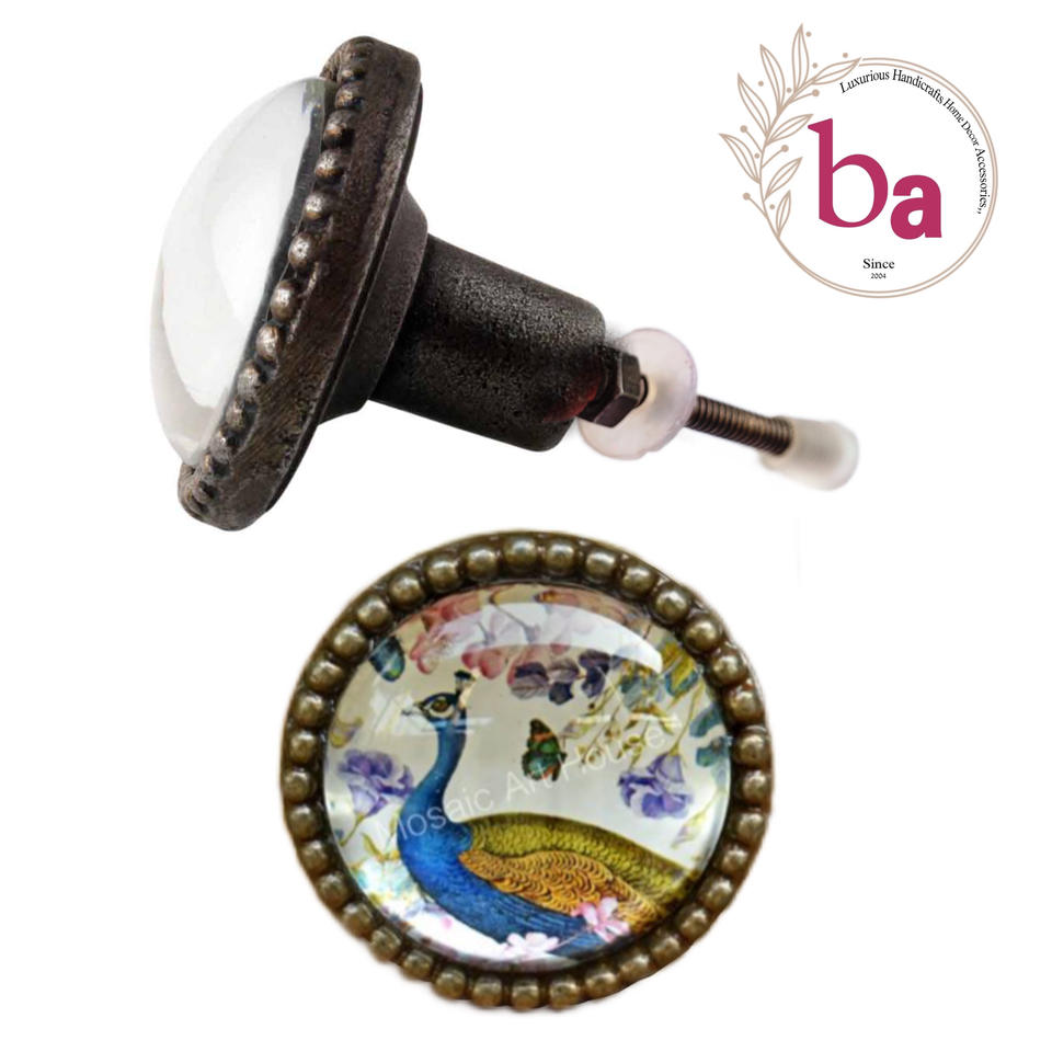 Peacock Pattern Metal Crystal Glass Cover for Bedroom Furniture Kitchen Door Cabinet Drawer Knobs Pull Handle for Dresser Villa
