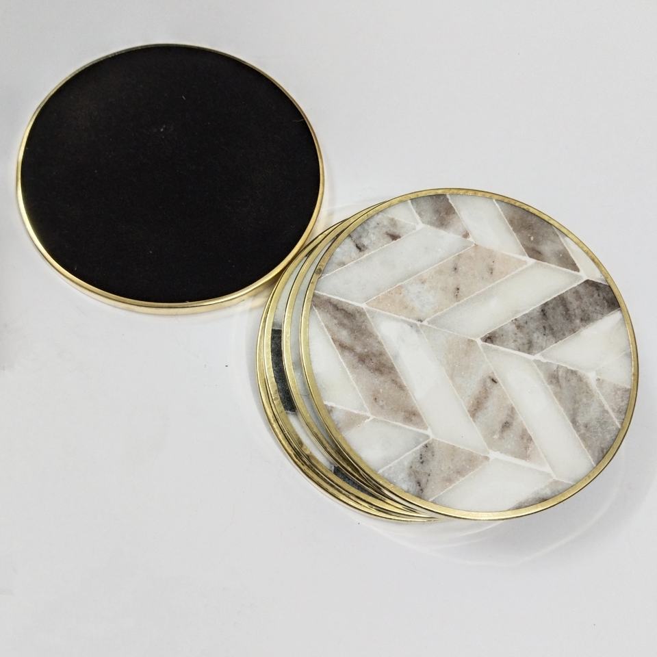 Peak Natural Luxury Marble Coasters Set Toronto and White Marble Striped Lining Stone Material 4pcs set for Table Use in India