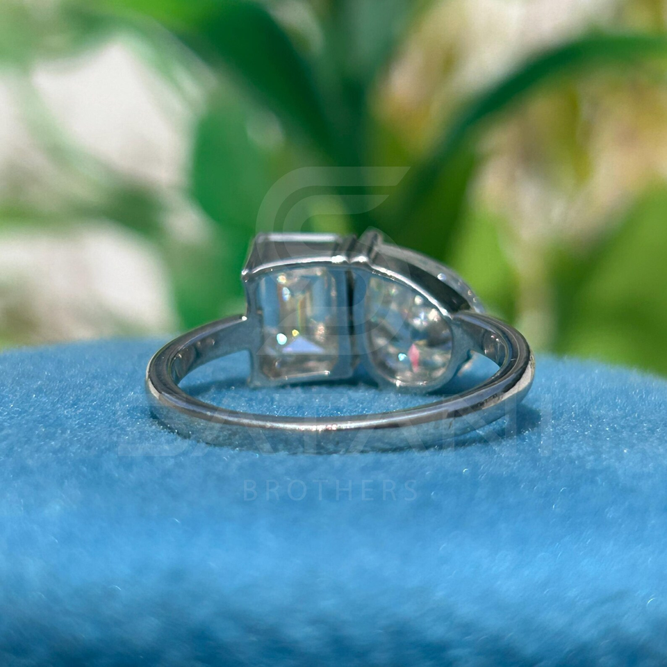 Pear And Emerald Two Stone Toi Et Moi Moissanite Ring Elegant Wedding Anniversary Gift For Wife Romantic Fine Jewelry Design