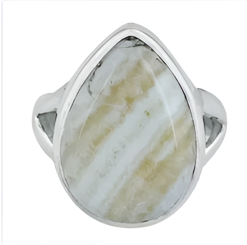 925 Sterling Silver Classic Fashionable Ring Pear Banded Agate Gemstone Bezel Set Unisex Wedding Party Gift Classic Silver