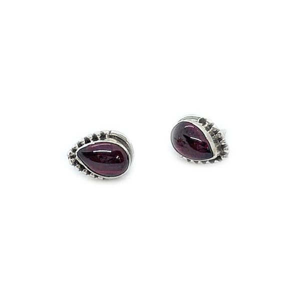 Pear Cab Garnet Gemstone Stud Earring 925 Sterling Silver With Silver Plated Bezel Setting Fashionable Earring For Wedding Gift.