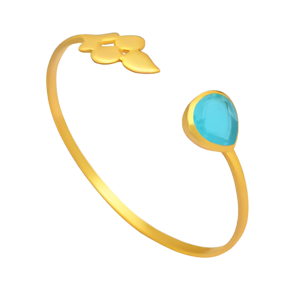 Pear Chalcedony Gemstone Bangle Silver Jewelry 925 Sterling Silver Gold Plated Bangle Trendy Fashionable Bangle For Women.