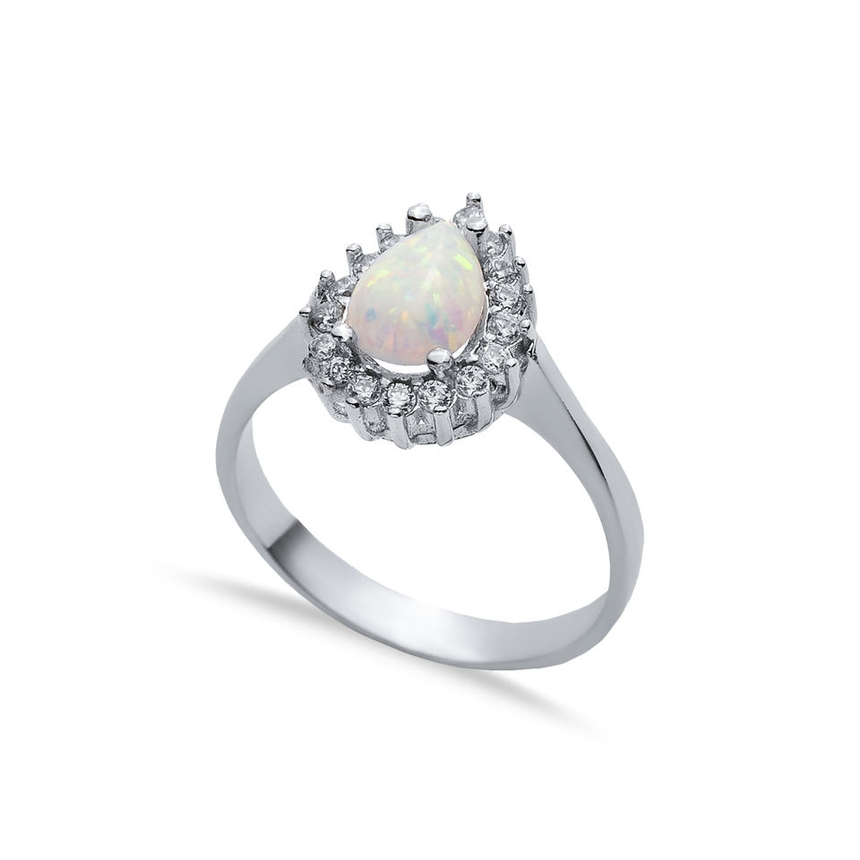 Pear Cut Solitaire White Opal Stone Made in Turkey Cluster Ring Handmade 925 Sterling Silver Wholesale Fine Jewelry