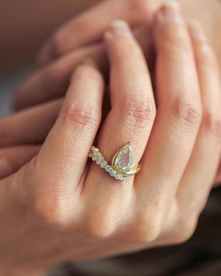 Pear Cut Yellow Solitaire Engagement Ring with Curved Diamond Band 14K 18K Yellow Gold Bridal Lab Grown Diamond Ring Wholesale