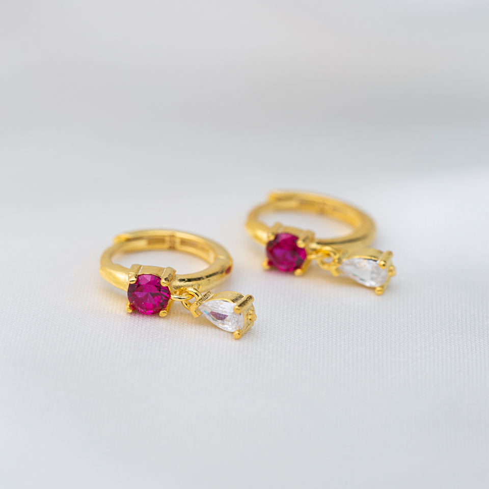 Pear Drop Shape Ruby Zircon Stone Hoop Earrings Turkish Wholesale 925 Sterling Silver Jewelry