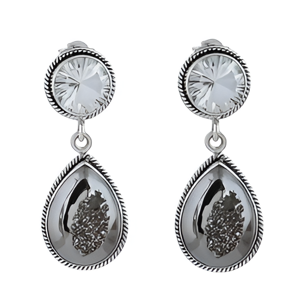 Pear Druzy Round Quartz Gemstone 925 Sterling Silver Stud Dangle Earrings Classic Silver Plated Fashionable Earring for Women.