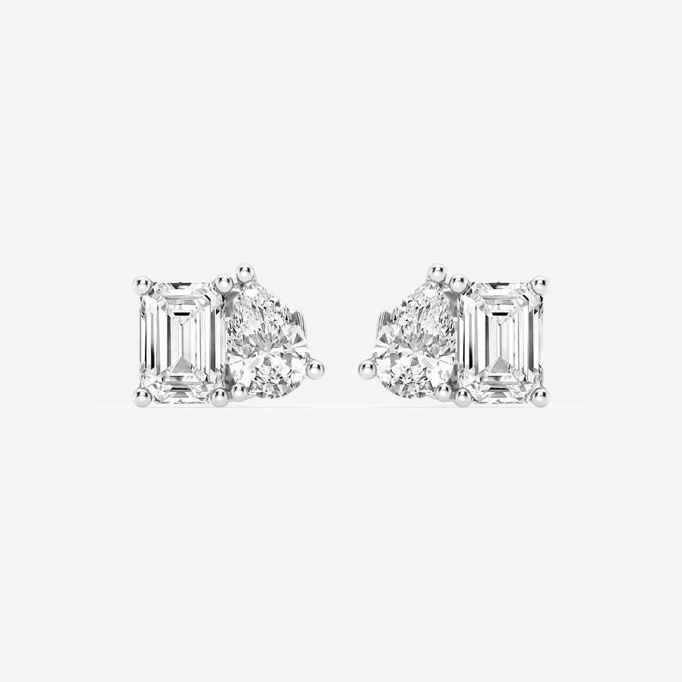 Pear & Emerald Cut Toi Et Moi Lab Grown Diamond Earring Two Diamond Stud Earrings for Birthday Girl CVD/HPHT Engagement Wedding