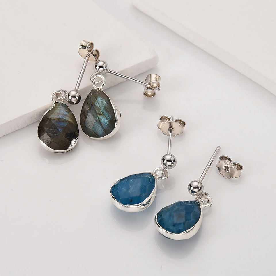 Pear Faceted Multi Fluorite Gemstone Ball Drop Studs Earrings - Silver Earrings Jewelry - Silver Electroplated Fashion Earrings