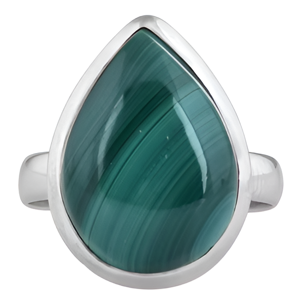 Pear Malachite Gemstone 925 Sterling Silver Ring Jewelry Fancy Classic Silver Plated Fashionable Ring for Unisex.