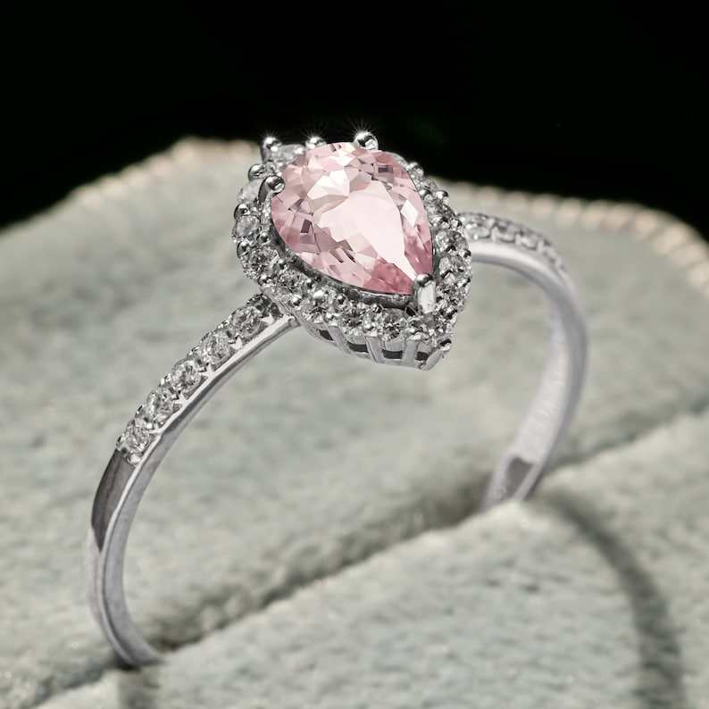 Pear Morganite Ring 925 Sterling Silver 14K Gold Plated Pink Gemstone Halo Ring Vintage Solitaire Gift For Girlfriend