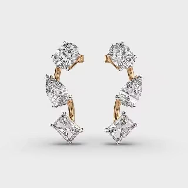 Pear, Oval And Emerald Diamond 18k Gold Plated Fancy Small Gold Ladies Earrings for Party Girls from Indian Supplier