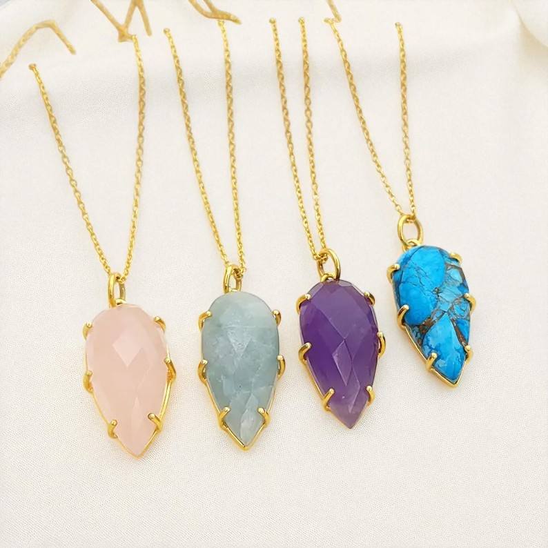 Product Name:Gemstone 925 Sterling Silver Gold Plated Prong Set Pear Necklace
