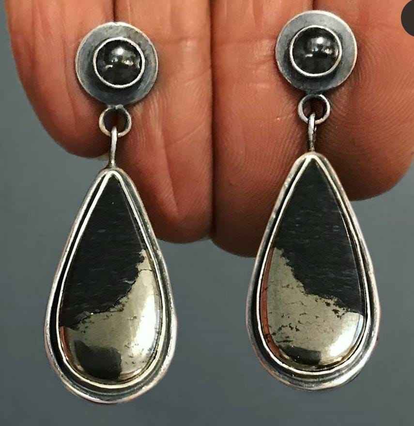 Hematite & Black Onyx Gemstone Earring Silver Statement Jewelry